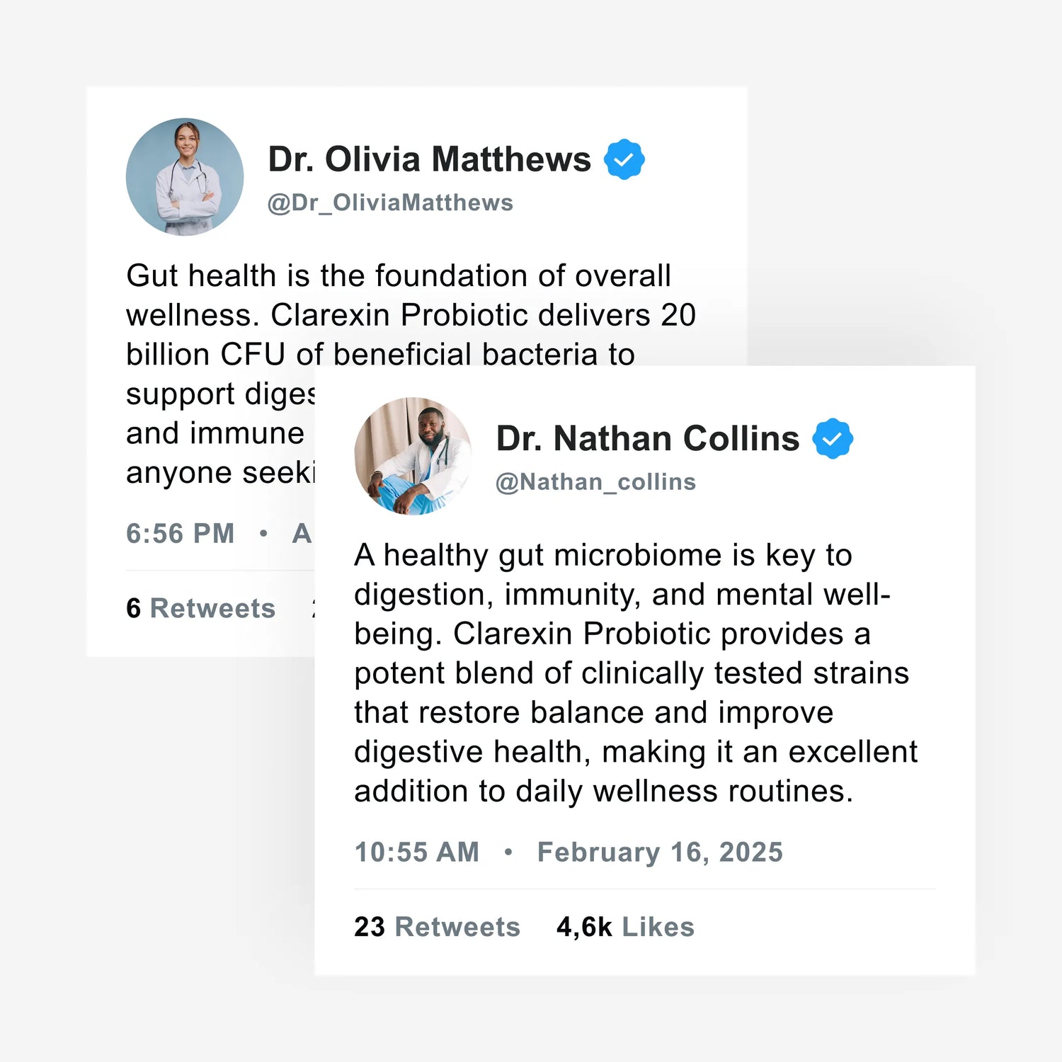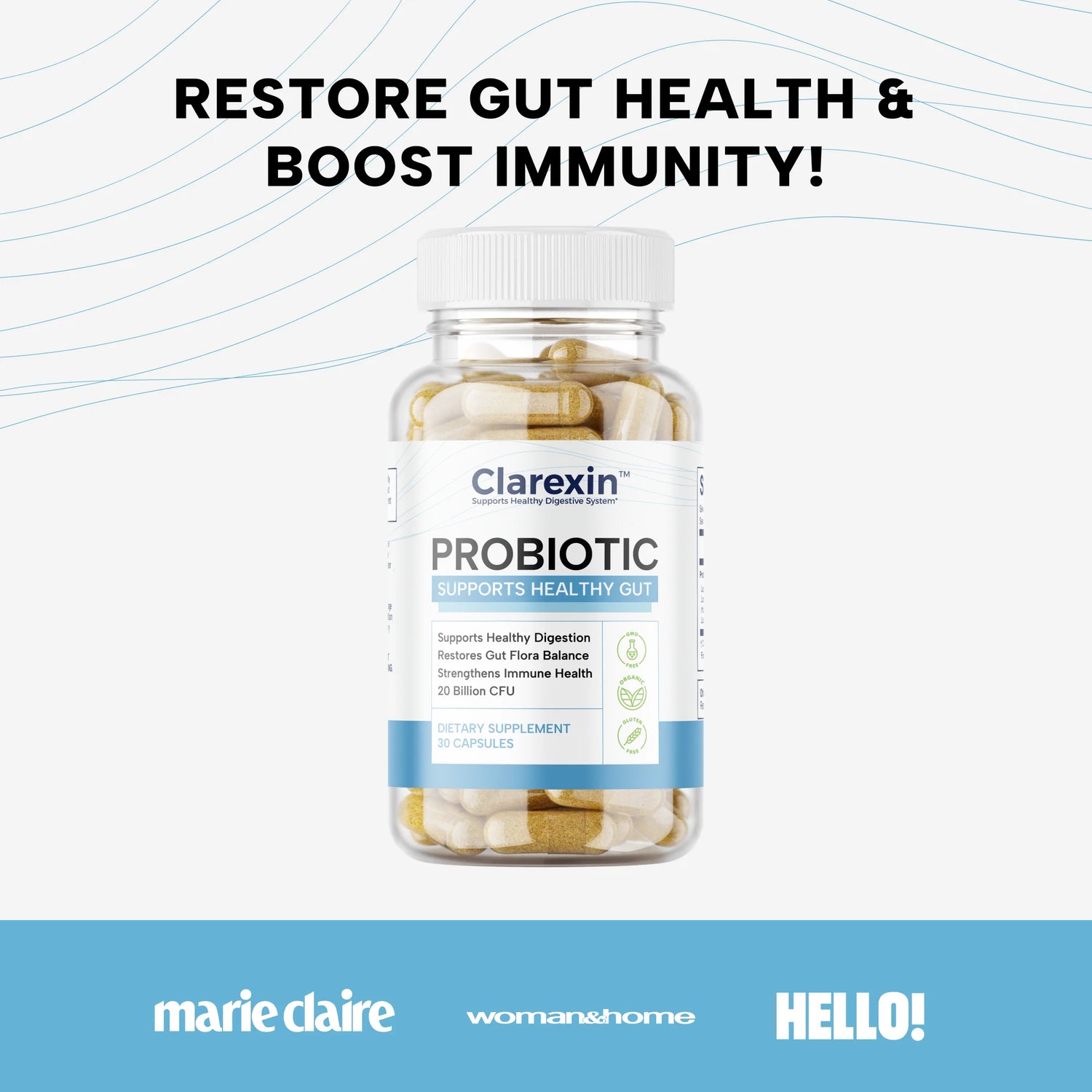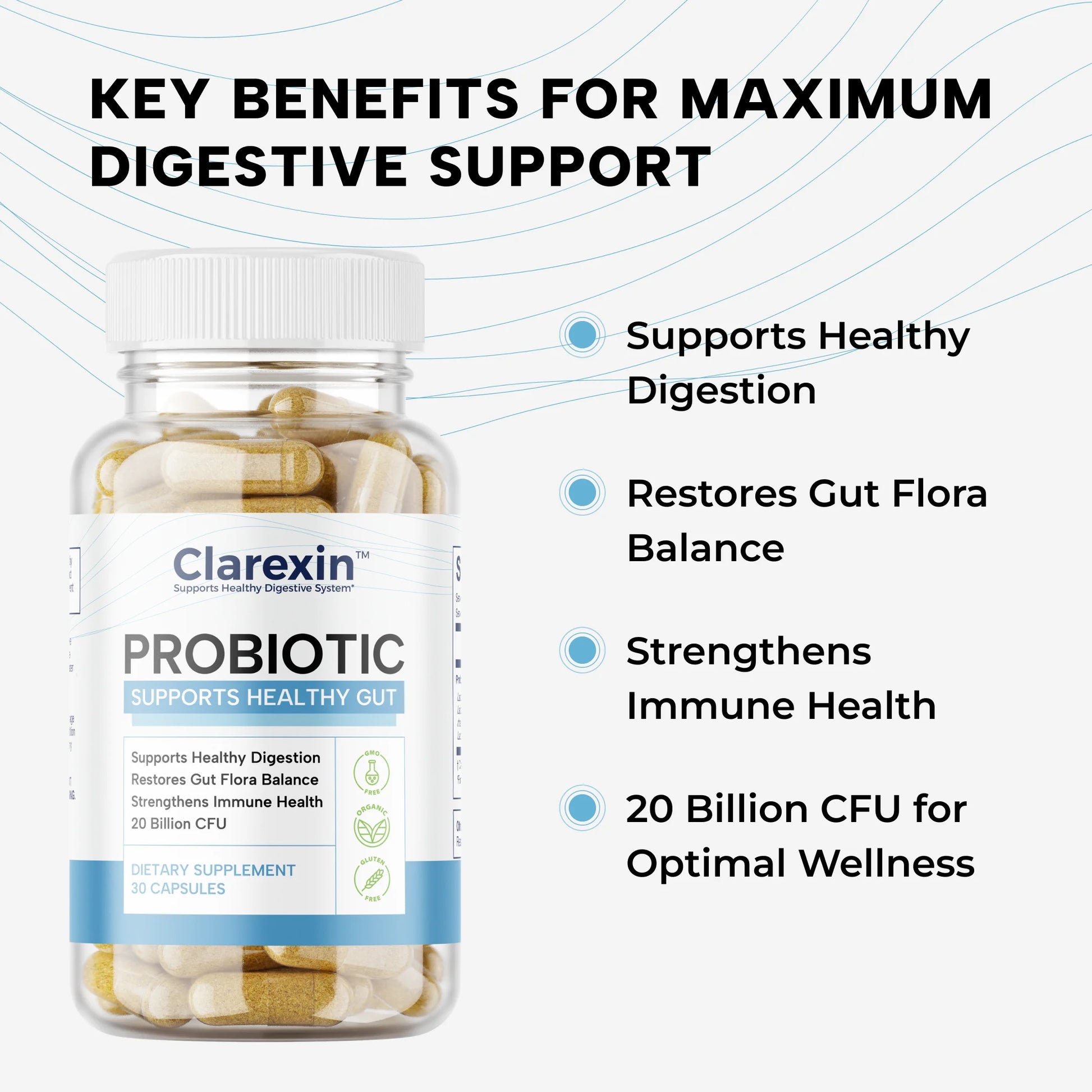 Clarexin Probiotic is a high-strength probiotic blend designed to support gut balance, improve digestion, and strengthen immunity. With 60 Billion CFU and 5 clinically studied probiotic strains, this formula is made for maximum effectiveness.