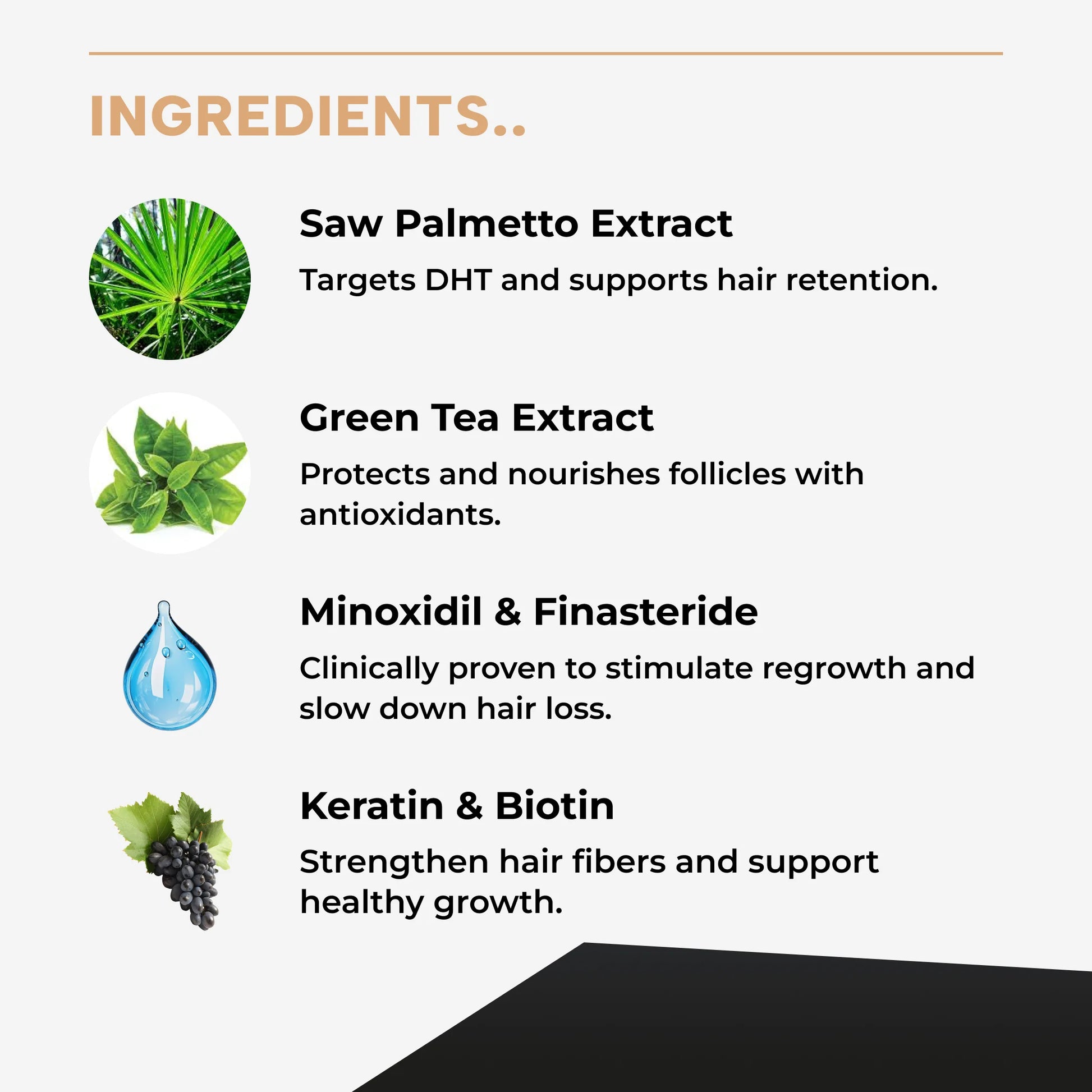 A cutting-edge regrowth spray designed for men who want stronger, thicker, and healthier hair.