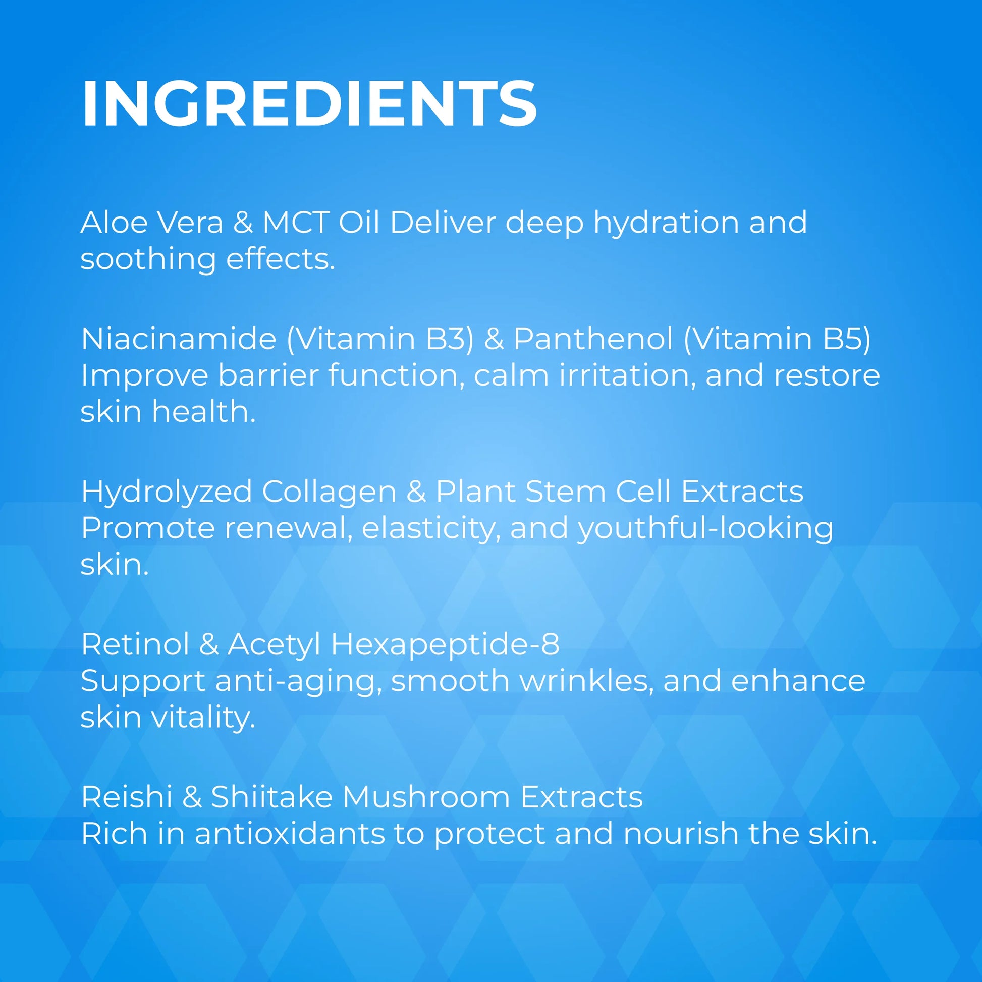 Hyaluronic Acid, Aloe Vera, and Avocado Oil penetrate deep into skin layers, locking in essential moisture.